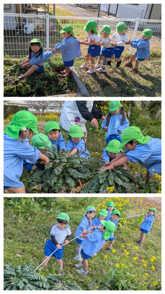 「うんとこしょどっこいしょ!」と発表会の劇遊びを思い出しながらみんなで力を合わせて引き抜きました。